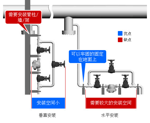 当选择某些类型的疏水阀,例如自由浮球式时,需要确认不同型号的疏水阀安装方式可能有所不同,部分型号是水平安装,而部分是垂直安装的。